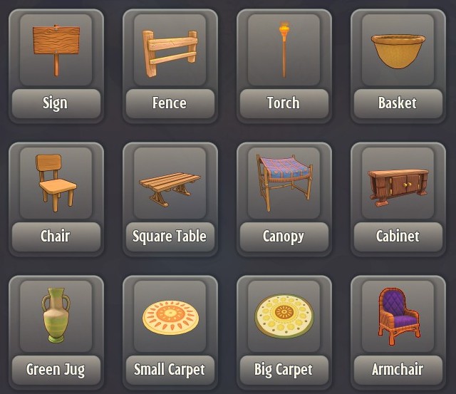 | Chair | Unlocks in Tier 3 of the Obelisk | 50 Grovewood |