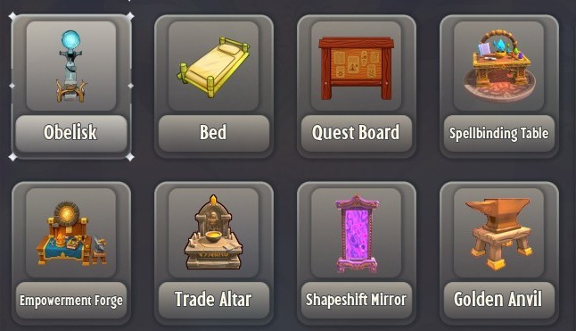| Quest Board | Unlocks in Tier 0 of the Obelisk | 500 Grovewood 250 Dust 5 Cloth |
