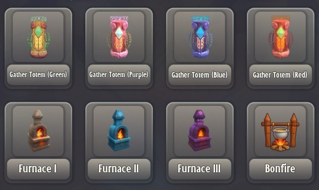 | Gather Totem (Green) | Unlocks in Tier 2 of the Obelisk | Can gather Grovewood and Bamboo. Up to 1,000 of the selected resource will be gathered. | 500 Grovewood 500 Stone 500 Dust |