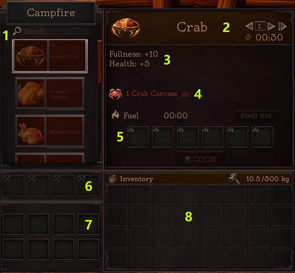 Roasted CrabCrab Carcass x1Fullness: +10 Health: +50:30