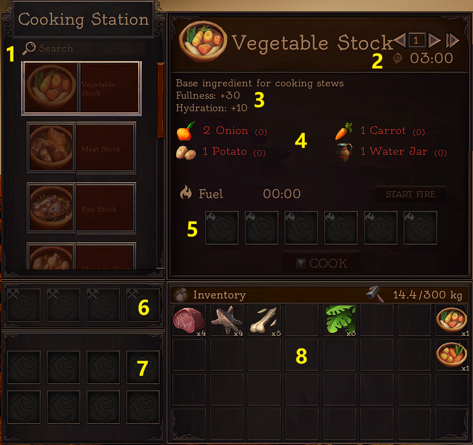 A more advanced cooking structure turning “Stocks” into “Stews” giving various Meal effects.