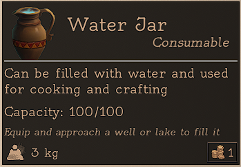 • Water and Milk Jars- Looted or Crafted in Workbench.