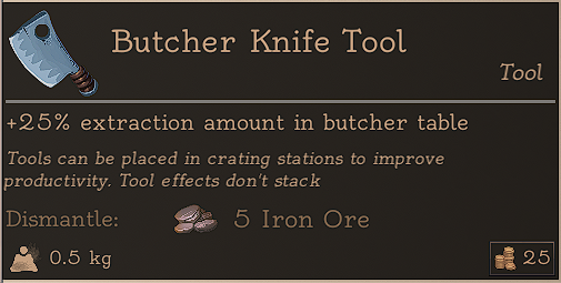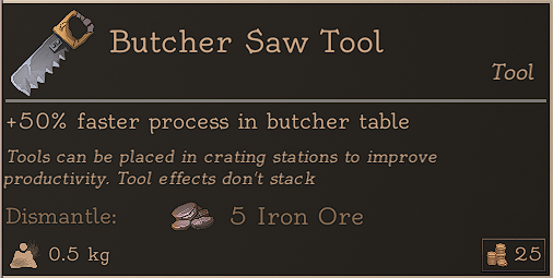 The Butcher Knife Tool and the Butcher Saw Tool cannot be crafted and only looted or bought from the Trader.