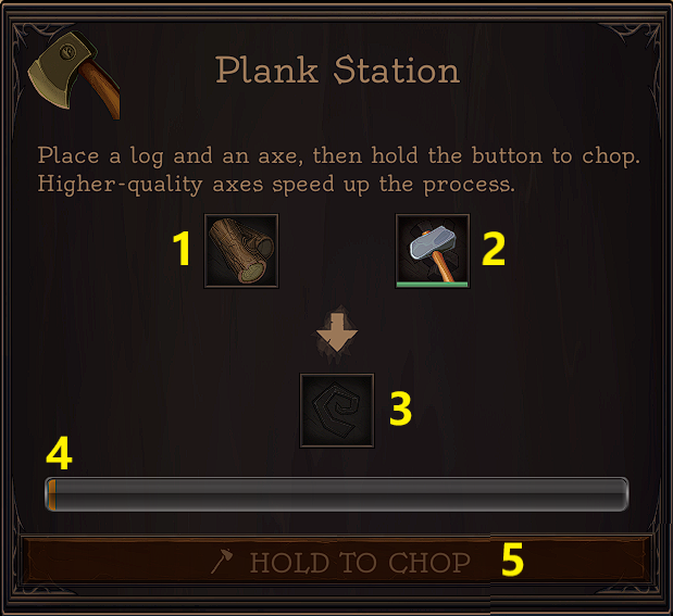 | Plank Station | 1 | 0:30 | Logs x5 | Turn Logs into Planks | ||