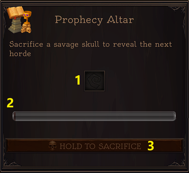 | Prophecy Alter | 12 | 1:30 | Savage Skulls x10 Bone x12 Sharp Stone x8 | Gives countdown to horde |