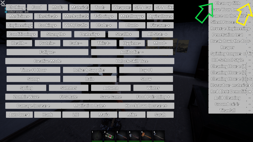 You will then see the Admin Panel. From here you can spawn in items, increase/decrease stats and change gameplay settings.