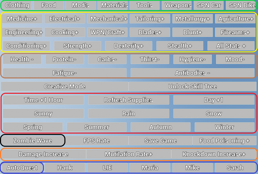 - Spring, Summer, Autumn and Winter– instantly alters the season including the Day and can break* the game.