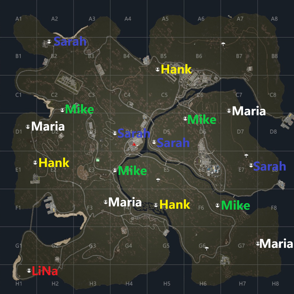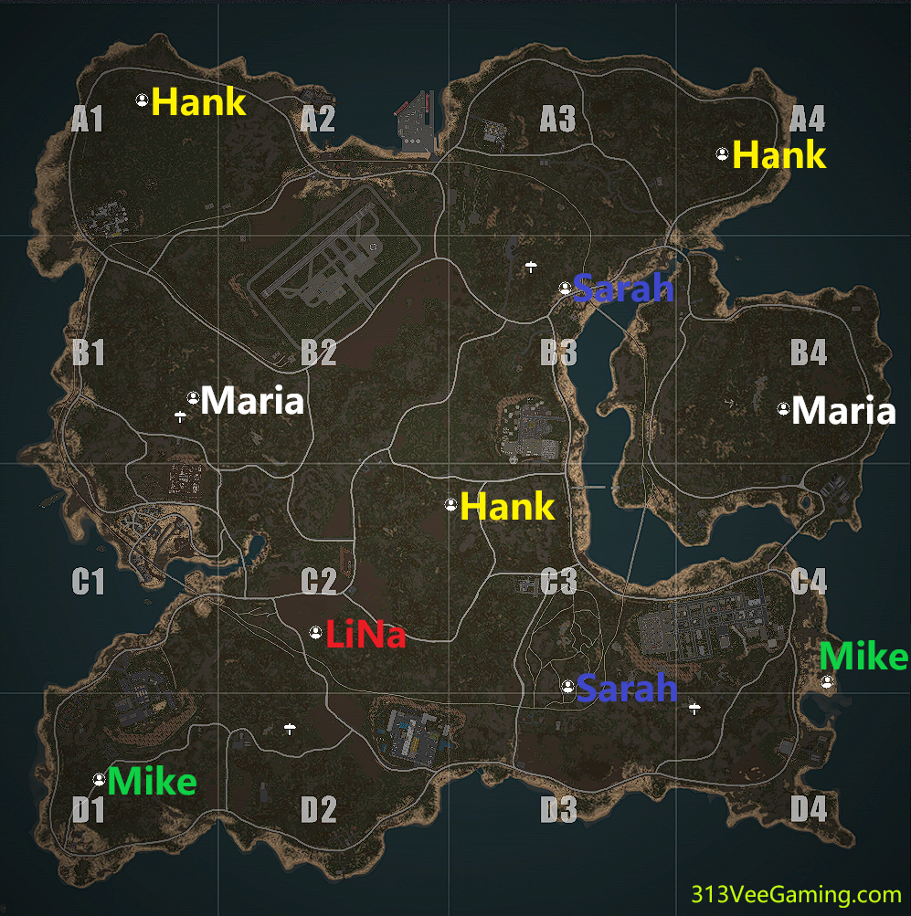 The traders are grouped by the names of Hank, Li Na, Maria, Mike and Sarah and are across all three maps regardless of what they sell, trade or teach.