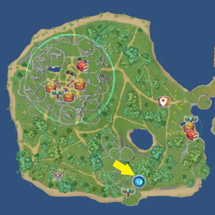 The Awakening Shrine can be found in the southern part of Everland, marked by a blue swirling circle, as shown near the yellow arrow in the image to the left.