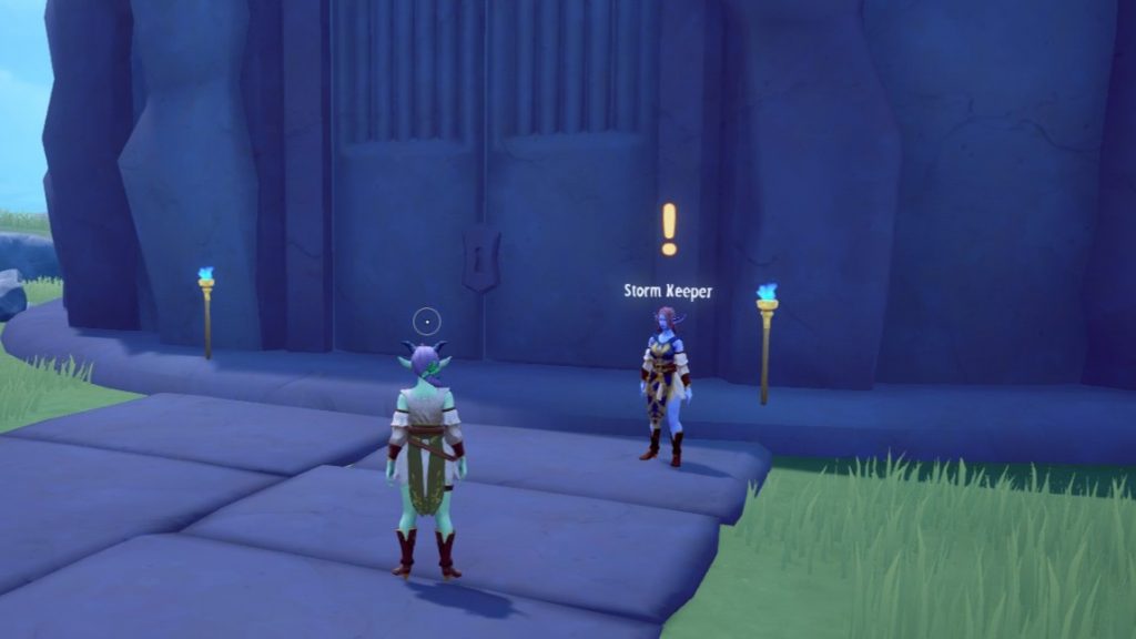 Before you can confront the Storm Sovereign, you must obtain and complete the Storm Tamer quest from the Storm Keeper. The Storm Keeper is located on Storm Isle to the right of the Storm Gate.